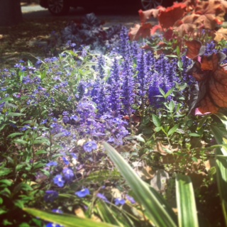 事務所前のアジュガもぐんぐんと伸びて花を咲かせています。