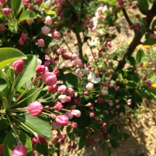このところの暖かさでヒメリンゴはじめいくつかの花は、